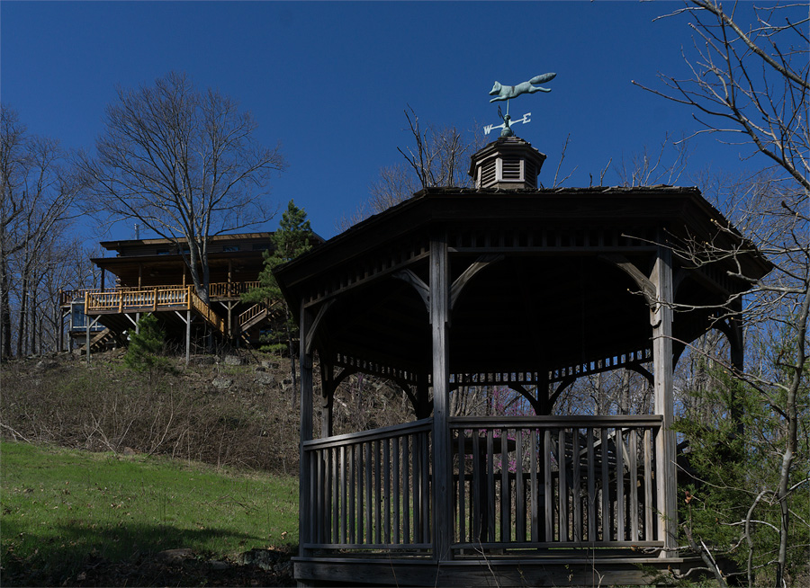 BUILDING #6) 12' Amish Gazebo with swing in the meadow below